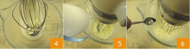 In the stand mixer, place the butter cut into chunks 4 and, while the mixer is working, add the sugar 5 and the seeds from the vanilla pod 6.