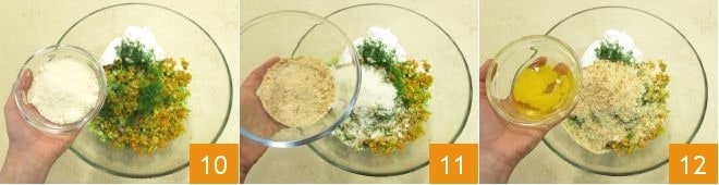 the grated Pecorino 10, the breadcrumbs 11, the egg 12, salt and pepper.