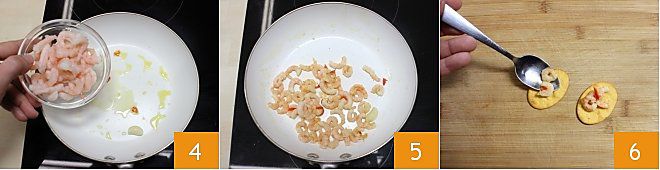 When the garlic is well golden, add the peeled shrimp 4 and salt them to taste. Sauté them in the pan over high heat for a few minutes until they are well browned 5. Arrange the flatbreads on a cutting board and place the ingredients on top using a spoon. At this point, your flatbreads with shrimp, garlic, oil, and chili are ready to be served and enjoyed immediately!