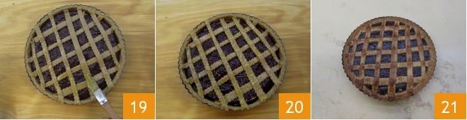 Brush the surface of the lattice with a beaten egg 19 and bake in a preheated static oven at 350°F for 60 minutes (if using a convection oven, bake at 320°F for about 50 minutes) 20. If it darkens too much, after 35 minutes (about 25 minutes if convection), cover with aluminum foil. Then remove your spiced tart with strawberry jam from the oven and let it cool slightly before removing it from the mold 21; let it cool to firm up... then enjoy!