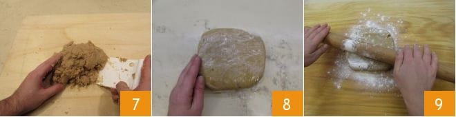 Form a dough ball using a dough scraper if necessary 7 and cover it with plastic wrap 8. Let it rest in the refrigerator for at least 30 minutes. After this time, remove it from the wrap and roll it out with a rolling pin on a lightly floured work surface 9: you should achieve a thickness of about 0.4 inches.