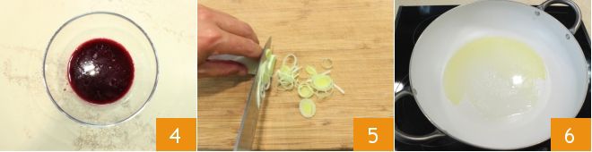 this way you will obtain a thick juice 4. Cut the leek into thin slices 5, then in a pan melt 3 tablespoons of butter over moderate heat 6