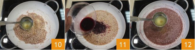 Continue cooking by adding a ladle of vegetable broth when needed 10, to prepare the broth follow our recipe Vegetable broth. Now add the strawberry grape puree 11, mix well until absorbed, always on low heat, and continue cooking your strawberry grape risotto by adding a ladle of vegetable broth 12 whenever needed until fully cooked, it will take about 20 minutes.
