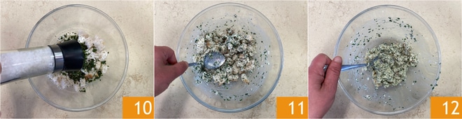 Salt and pepper to taste 10 and mix everything together 11: you should obtain a consistent paste 12.