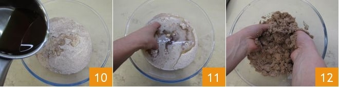 Also incorporate the now lukewarm honey 10 and mix with your hands 11 until you get a rather uniform mixture 12.