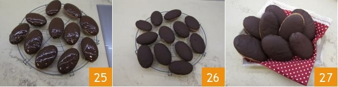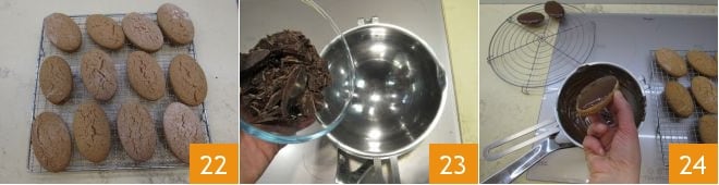 and let them cool on a wire rack 22. Continue baking the other cookies, kneading the leftover dough and rolling it out again. Allow your susumelle to cool completely and in the meantime melt the chocolate in a double boiler 23. When the chocolate is lukewarm, dip only the top of the cookies 24