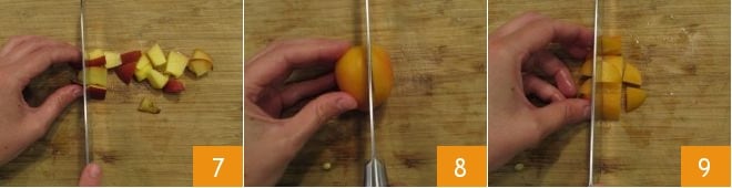remove the pit and dice it 7. Do the same with the apricots (8-9)