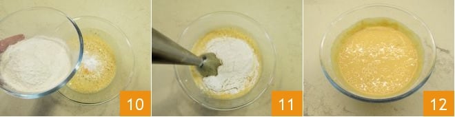 and the flour 10. Blend again with the mixer 11 until you get a thick and smooth batter 12.