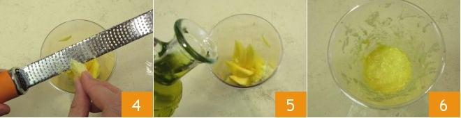 Grate the ginger into a jug 4, then add the mango, extra virgin olive oil 5, salt, and pepper. Blend with an immersion blender until you get a creamy and homogeneous sauce 6.