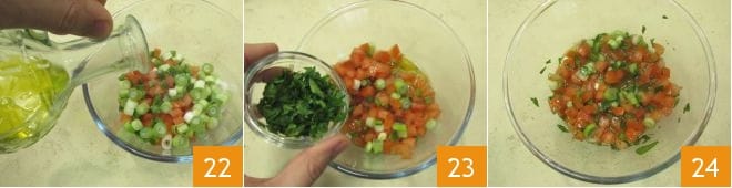 extra virgin olive oil 22 and chopped parsley 23, add salt, mix, and set aside 24.