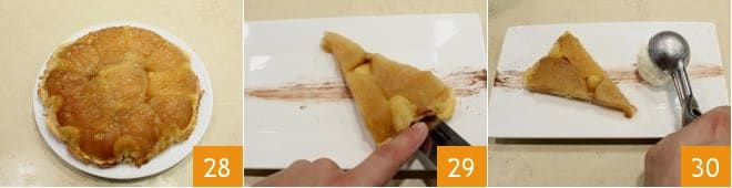 Your tarte tatin with condensed milk with fiordilatte ice cream and cinnamon is ready to be served 28! You can offer it in slices on a serving plate drizzled with some jam 29 accompanied by a scoop of fiordilatte ice cream with cinnamon.