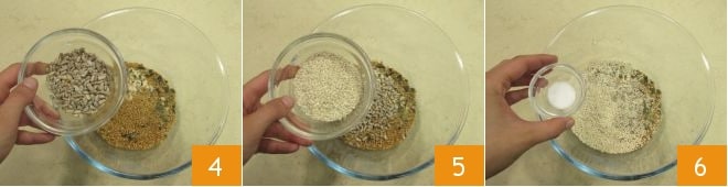 sunflower seeds 4, sesame seeds 5, and fine salt 6.