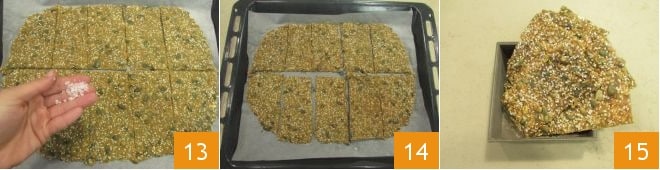 Sprinkle the crackers with coarse salt 13 and bake again for 30 minutes, this time on the middle rack of the oven. After this time, remove the tray from the oven again and let it cool 14. Your teff crackers are ready to be munched on 15!