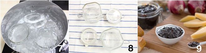 Now take care of sanitizing the jars (7-8): follow the instructions of the Ministry of Health indicated at the end of the recipe. Jar the Tropea onion compote with balsamic, being careful to leave 1 inch of space from the top, then close the jars well. Once the compote is in the jars, seal and proceed to boiling, or pasteurization, always following the instructions of the ministerial guidelines. Finally, check that the vacuum has formed correctly: if you do NOT hear the "click clack" when pressing the lid, it means the vacuum was done correctly. Once ready, store the Tropea onion compote with balsamic in a cool, dry place and, when serving, put it in a bowl and accompany it with good aged cheese 9.