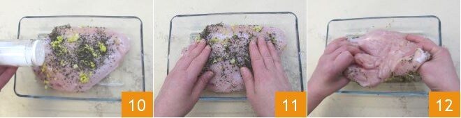 Sprinkle with salt and pepper 10 and massage well to absorb the flavors 11. Then turn your turkey breast over to the other side 12 and repeat the process with the remaining ingredients.