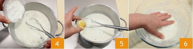 and the cornstarch 4, whisk to prevent lumps, finally add the honey 5 and cook everything over low heat, whisking to avoid lumps. The cream will be ready when it starts to thicken. Once ready, transfer it to a bowl and cover with plastic wrap; let it cool first at room temperature, then place it in the refrigerator.