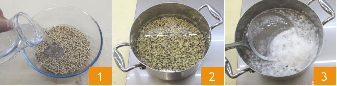 To prepare the vegetarian cutlets, start the night before by soaking the dry beans in cold water 1. After at least 12 hours, rinse the beans and transfer them to a pot with plenty of unsalted cold water 2 and cook them over low heat for about 2 hours, removing the foam that forms on the surface when necessary 3.