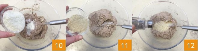 Also add the grated cheese 10, breadcrumbs 11 and season with pepper 12 and salt.