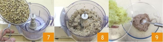 Once dry, transfer the beans to the mixer glass 7 and blend into a smooth and fine paste 8. Transfer this pâté to a large bowl and add the mashed potatoes 9.