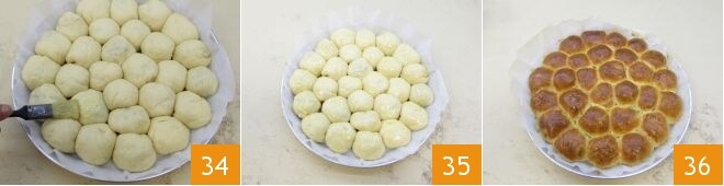 Then use it to brush the surface of each ball 34. You just need to bake it at 356°F for 30-35 minutes in static mode (320°F for 25-30 minutes if using a fan oven) 35, when the vegetarian danube is nicely golden, you can serve it while still warm 36!