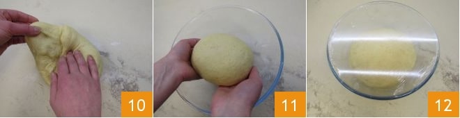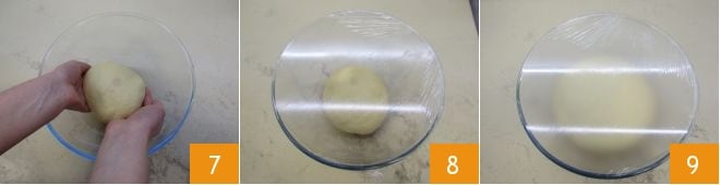 Place it in a bowl 7 and cover with plastic wrap 8. Put it back in the oven turned off with the light on for about 1 hour, until it has doubled in volume 9.