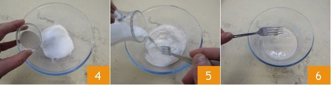 Add 4 g of dry yeast 4 and pour in 80 ml of milk (at room temperature) in a stream, mixing with a fork 5 until you get a smooth batter without lumps 6.