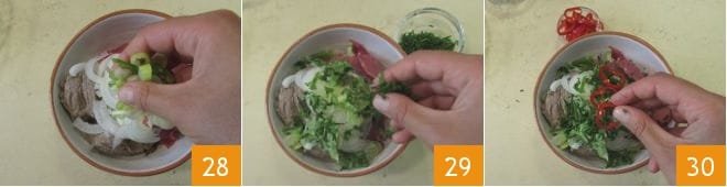 some scallion 28, a pinch of chopped herbs 29, and the chili 30.