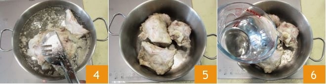 After 30 minutes, remove the bones from the pot 4 and discard the cooking water, then put the bones back in the same pot 5 and cover again with plenty of cold water 6.