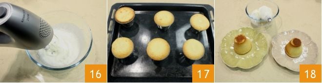 and whip everything with electric whisks 16. Then transfer the Maraschino cream to a pastry bag (you can store it in the refrigerator until serving time). Once baked, take the cakes out of the oven 17 and wait 5 minutes before turning them over and unmolding them onto serving plates 18. Accompany the white chocolate cakes with dollops of Maraschino cream!