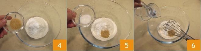 brown sugar 4, salt 5, and gradually add water, starting to mix with a whisk 6.