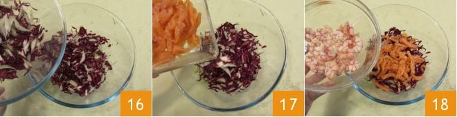 the radicchio 16, the salmon 17, and the boiled shrimp 18.