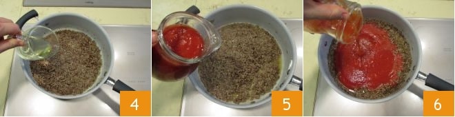 and then deglaze with white wine 4. Once the alcohol has evaporated, add the tomato sauce 5. Rinse the container with 50 g of water and add this to the ragù as well 6.
